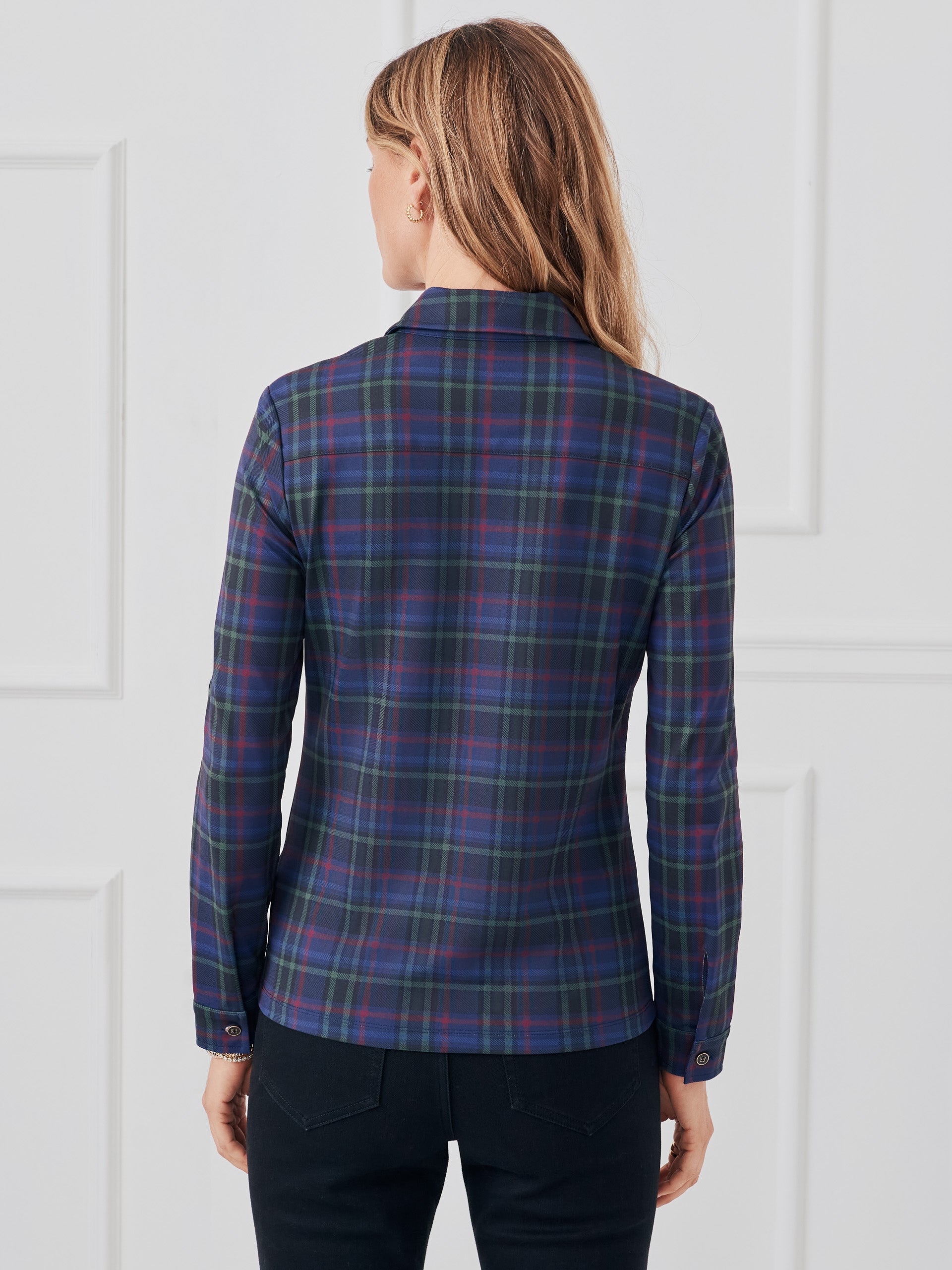 Point collar Long sleeve Catalina Cloth® (JMC Fabric) 91% Nylon, 9% Spandex Hand wash cold. Lay flat to dry. Imported. Size & Fit Classic fit 24.5″ long from top of center back (size M)Vanessa is 5’11” and is wearing a size XS