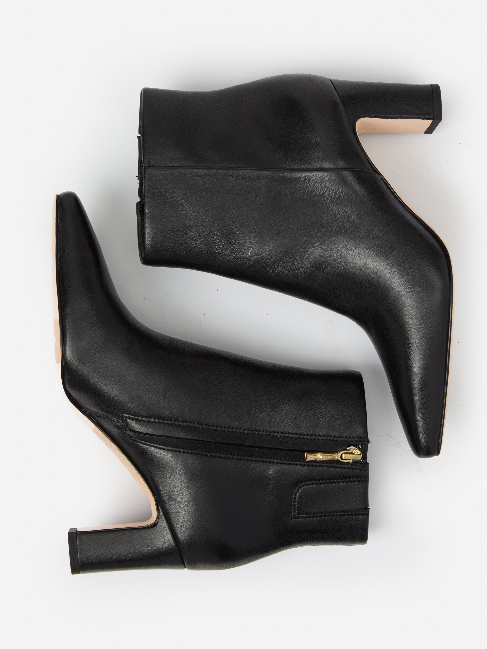 A true fall must-have: the ankle bootie, crafted in luxe Nappa leather with a soft pointed toe and a walkable heel under 3 inches.