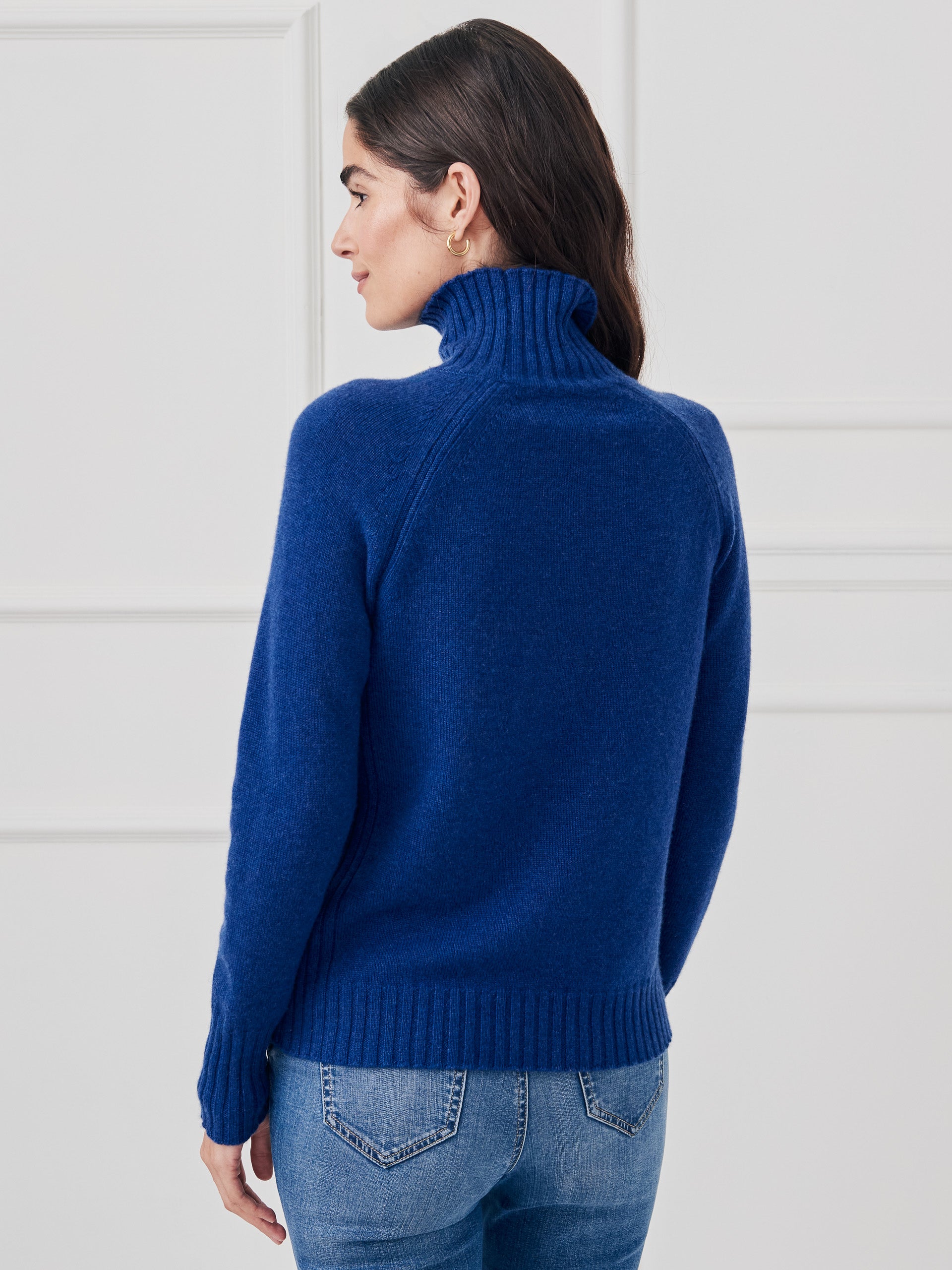 Long sleeves Turtleneck Ribbing at sides Ribbed detailing on cuffs, neck & hem 100% Cashmere Dry clean only. Imported. Size & Fit23.5″ long from top of center back (size M) Arlenis is 5’11” and Gabby is 5’9.5″ and both are wearing a size XS.