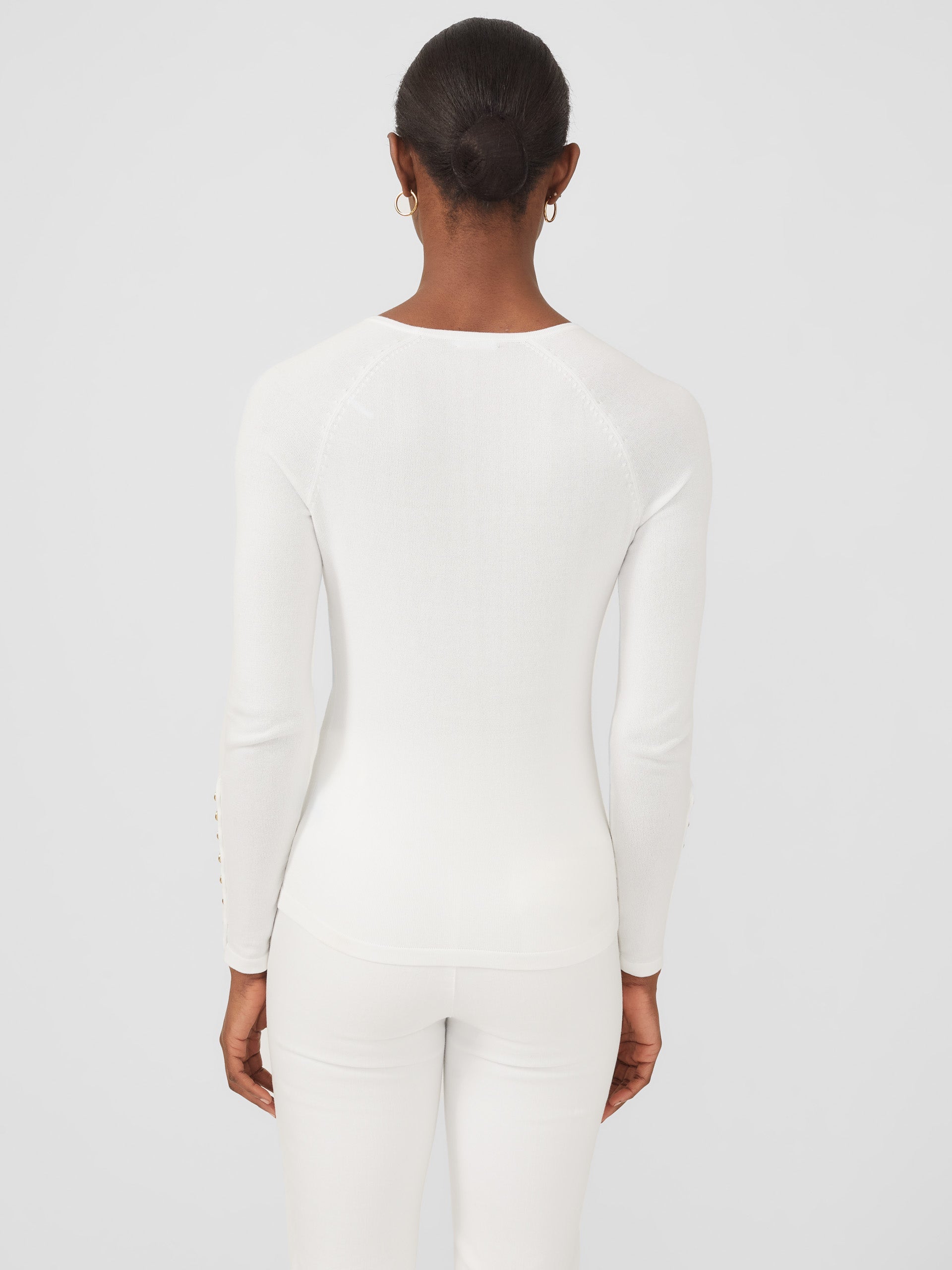 Crewneck. Long sleeves. Button accent along sleeves. 55% Cotton, 45% Modal Hand wash cold. Lay flat to dry. Imported. Size & Fit Classic fit 24.5″ long from top of center back