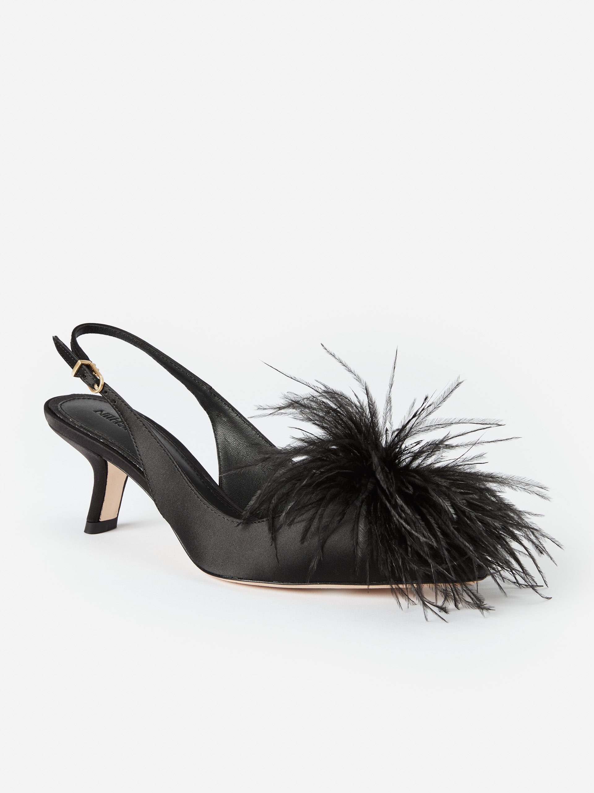Kylie brings playful polish to any party. Satin slingbacks topped with pom poms and set on a mid-heel— fun and refined.